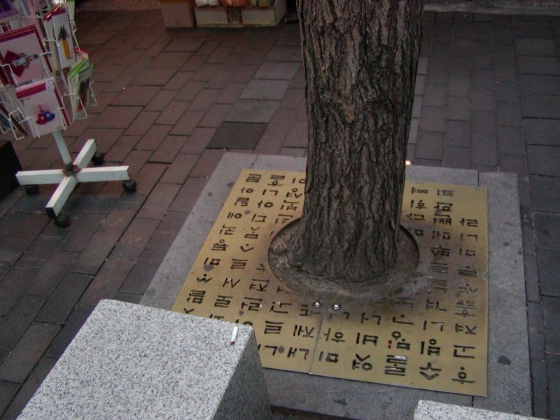 ■仁寺洞(インサドン)の繁華街で見つけた街路樹の根元のハングル。