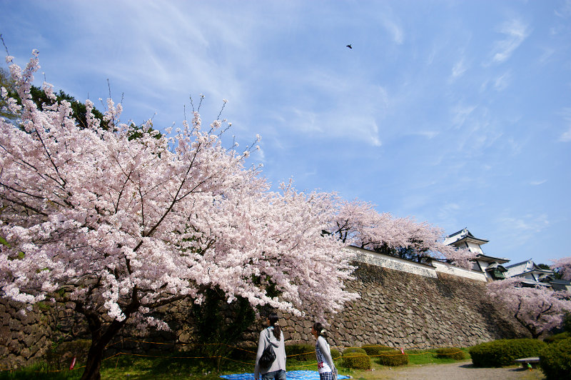 金沢城 石川門に続く石垣と桜