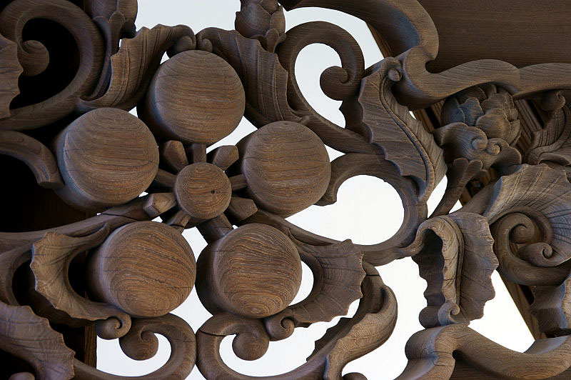 尾山神社 梅鉢の家紋の欄間彫刻