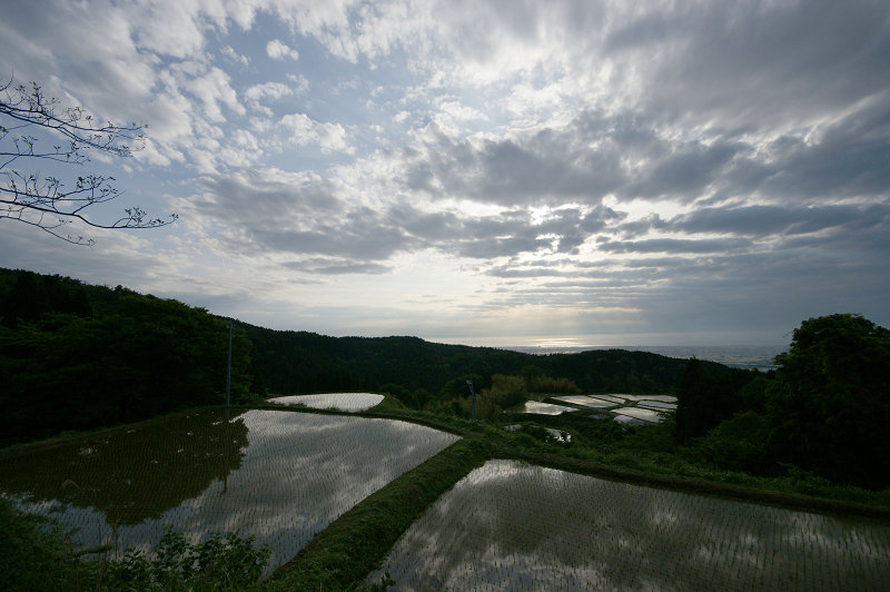 夕景:山間の棚田