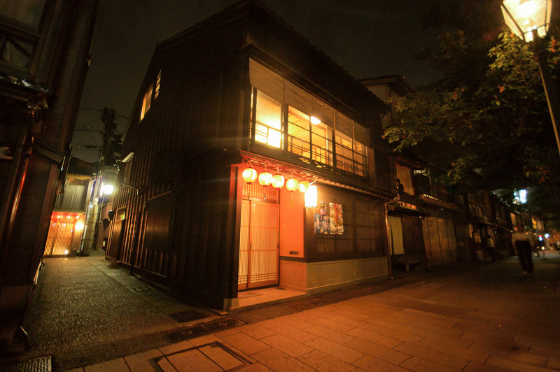 二階の宴席から加賀友禅灯ろう流しを見ながらの談笑が聞こえる。
