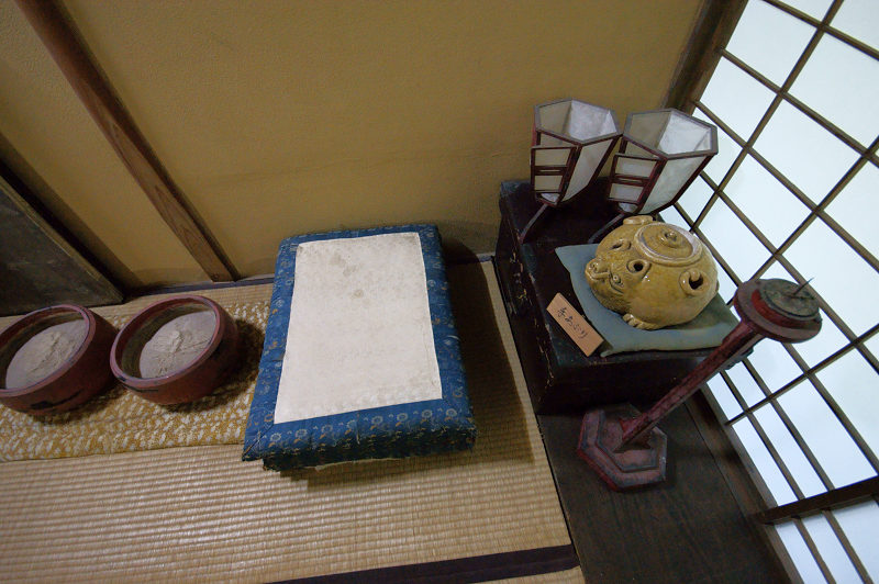 女性が化粧するための部屋。灯りと暖をとるための道具が並ぶ。